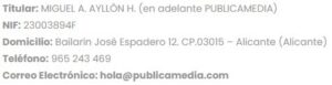 Para la resolución de todas las controversias o cuestiones relacionadas con el presente sitio web o de las actividades en él desarrolladas, será de aplicación la legislación española, a la que se someten expresamente las partes, siendo competentes para la resolución de todos los conflictos derivados o relacionados con su uso los Juzgados y Tribunales de Alicante (Alicante)